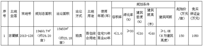 5、本次拍賣出讓活動由古藺縣公共資源交易中心負(fù)責(zé)組織實施,交易服務(wù)費由地塊競得人承擔(dān),拍賣成交后從競得人競買保證金中直接扣除。
