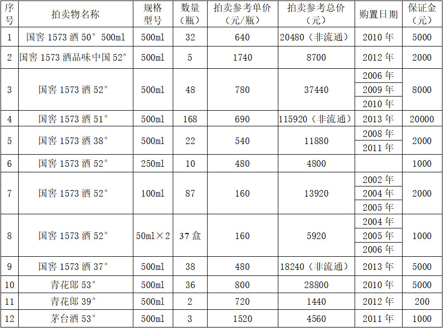 我公司接受委托,面向社會公開拍賣以下成品白酒。